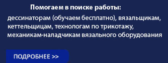 Помогаем в поиске работы: дессинаторам (обучаем бесплатно), вязальщикам, кеттельщицам, технологам по трикотажу, механикам-наладчикам вязального оборудования.
